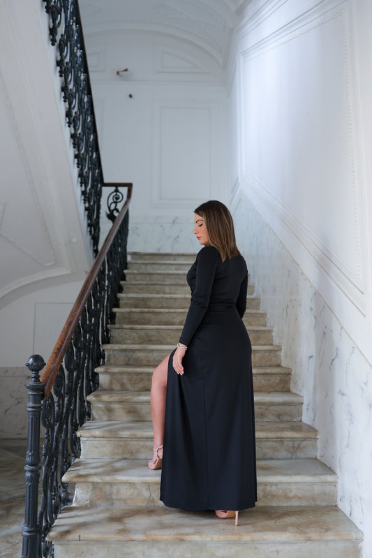 Vestitino nero lungo KONTATTOcon spacco laterale